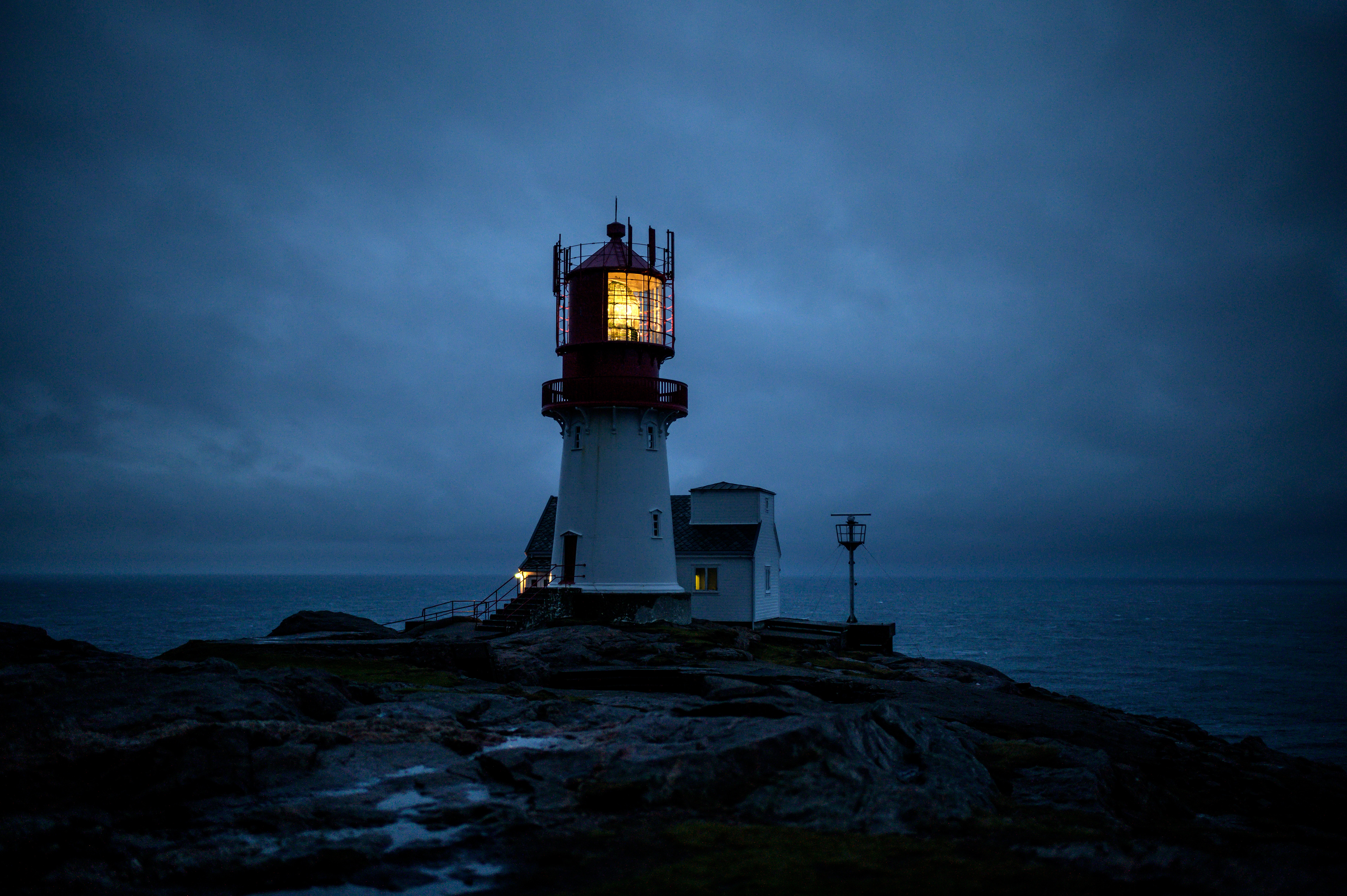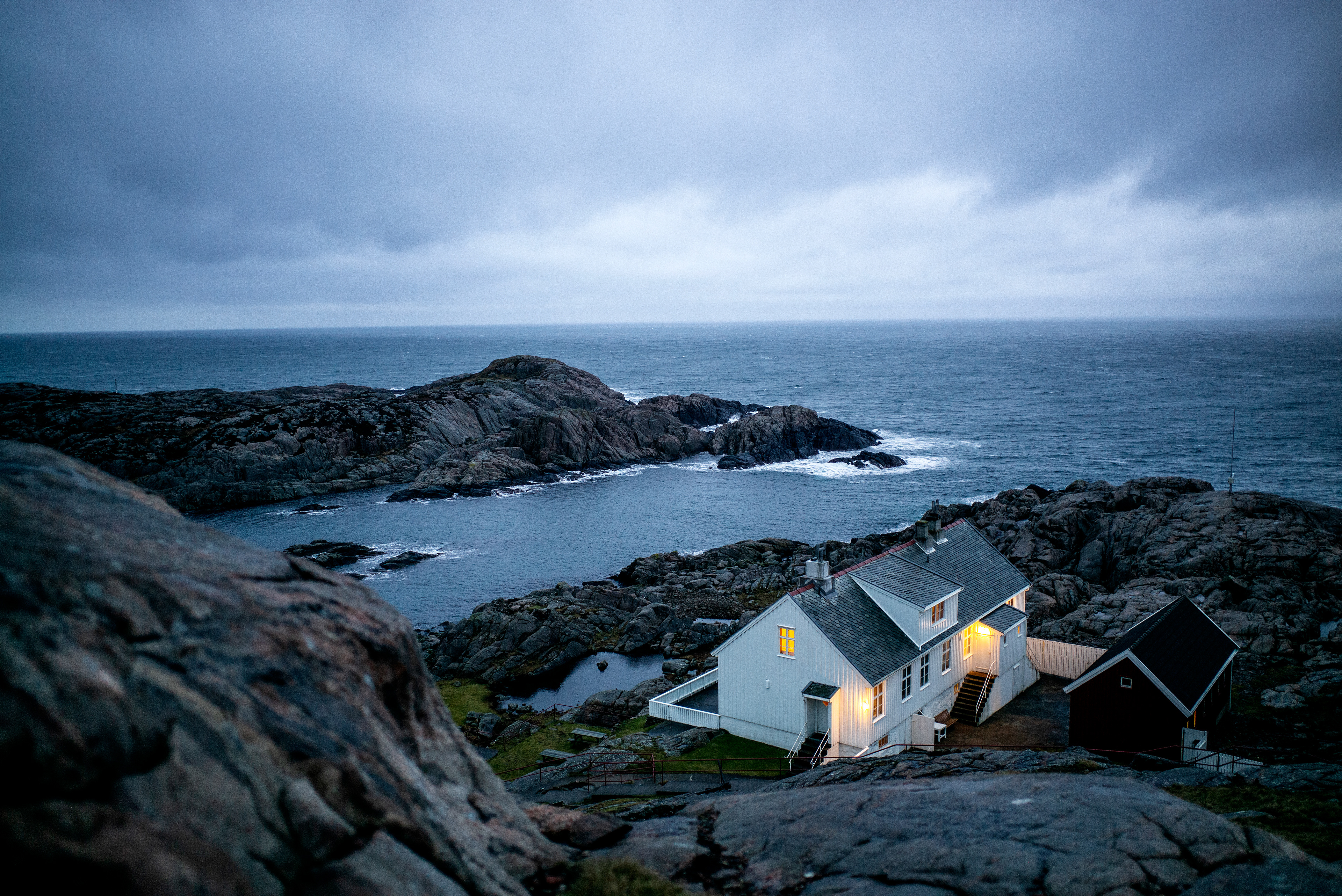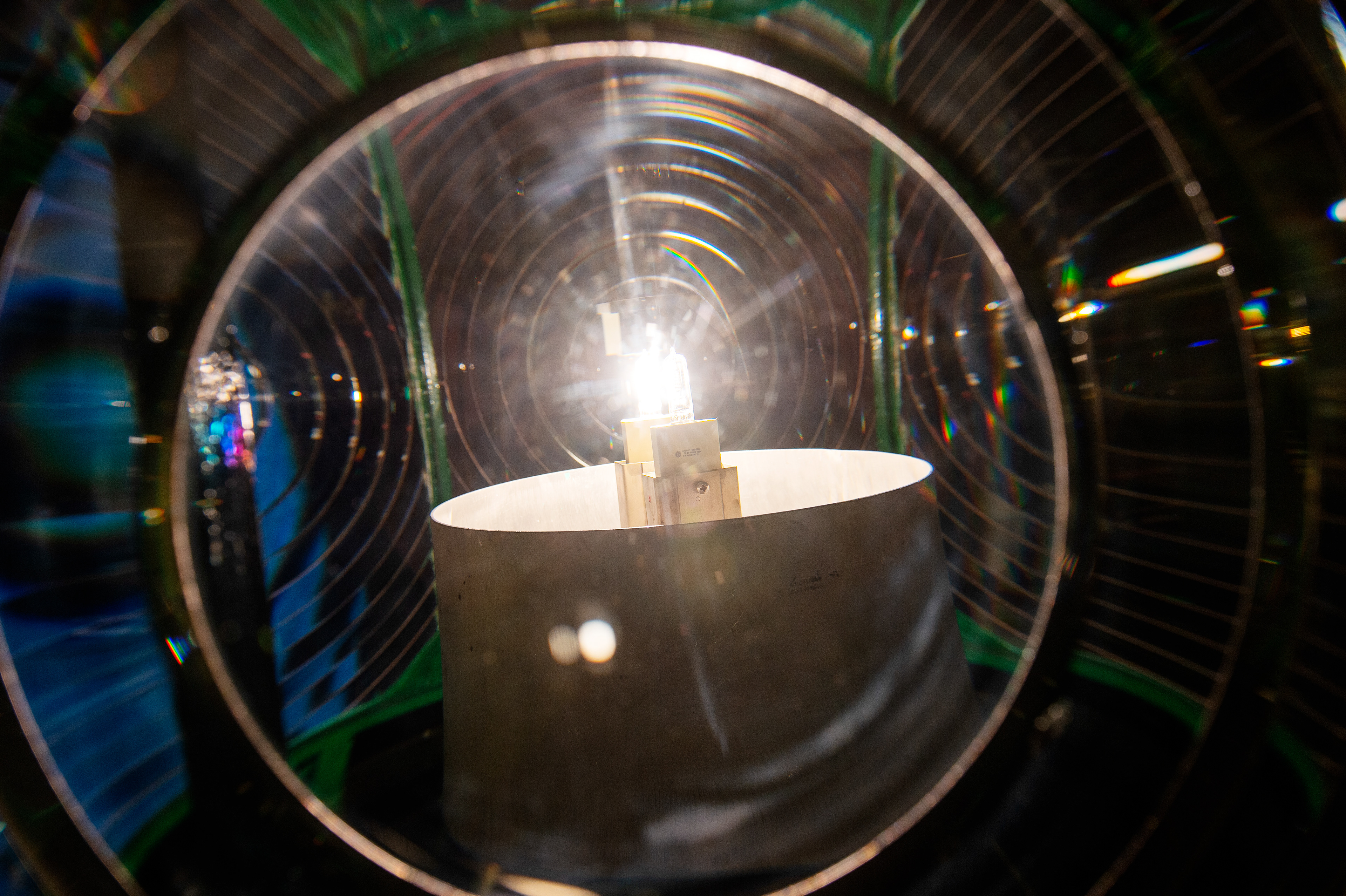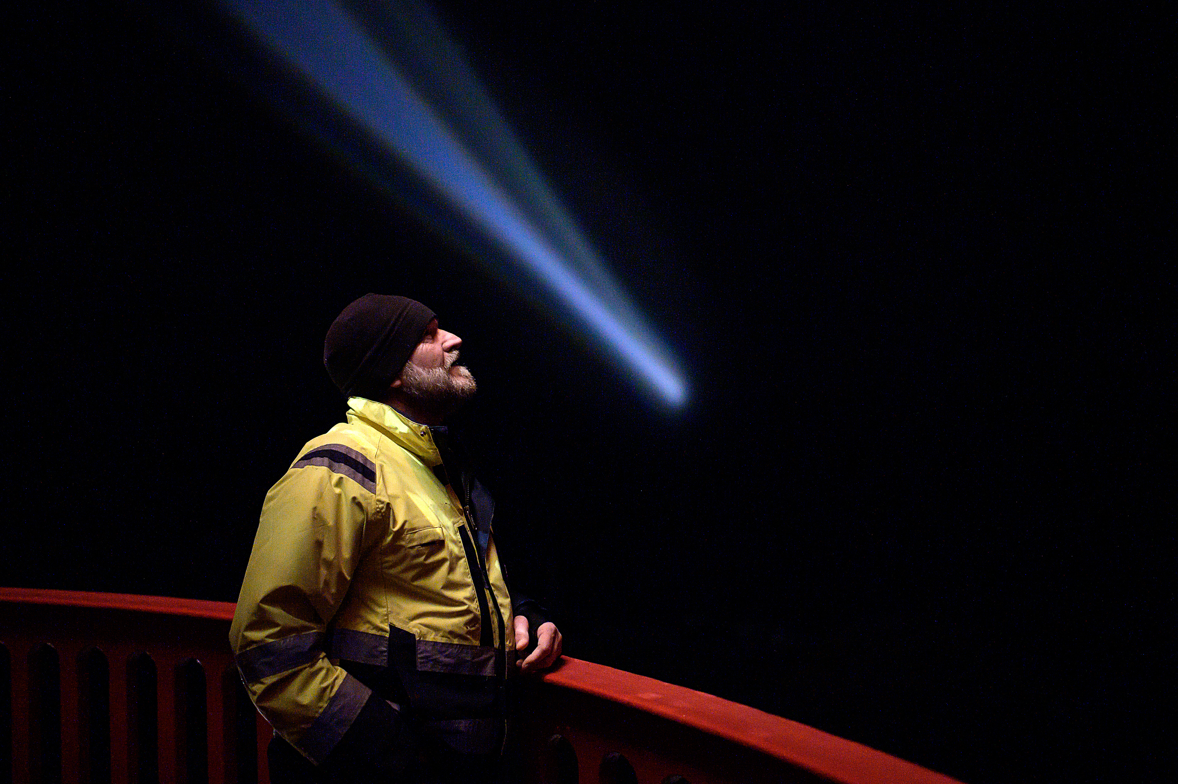 Ei relativt liten halogenpære på 1000 watt sender lysstrålene 37 kilometer ut i Skagerrak.