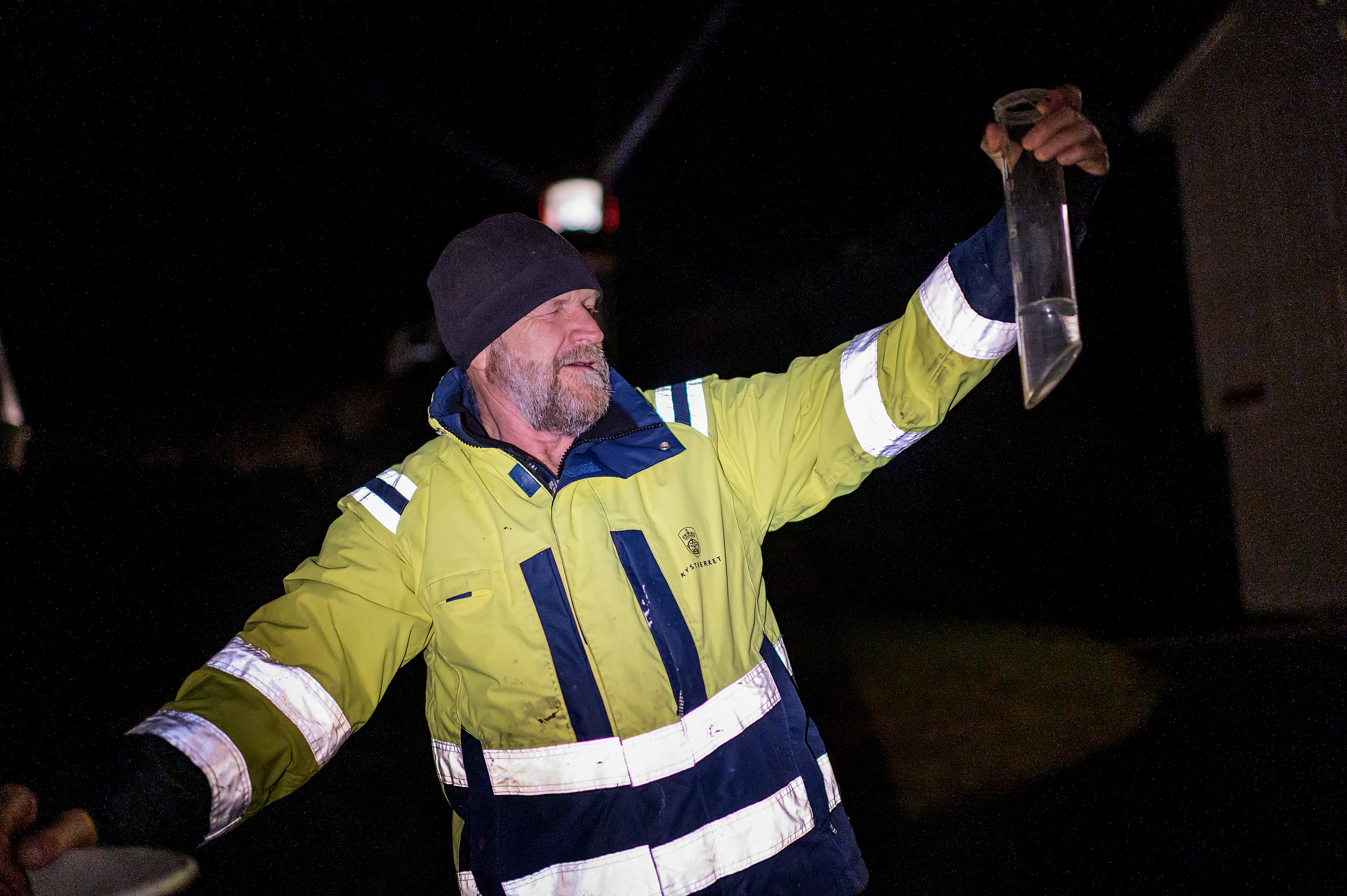 Kjell Olsen sjekker siste tolv timers nedbør og sender resultatet inn til Meteorologisk institutt.