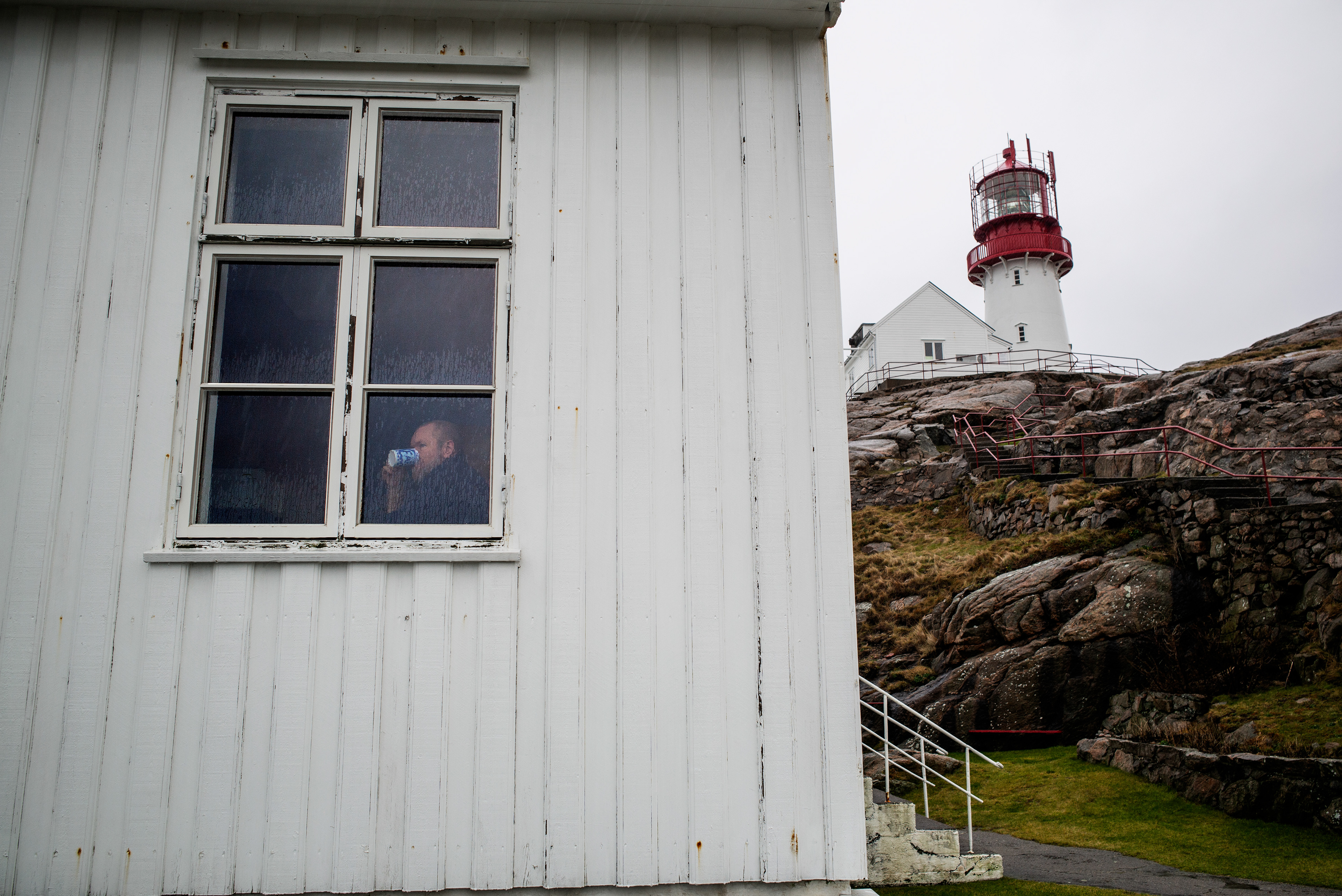 En noe morgentrøtt fyrvokter gjør seg klar til å skrive dagens værrapport til fyrets nettsider.